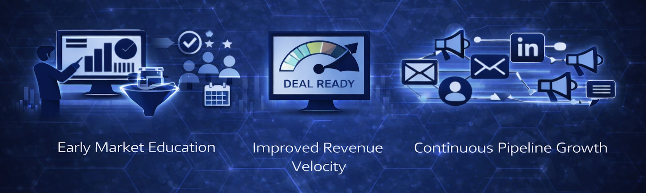 - A newsletter and webinar system that educates buyers before sales touches them