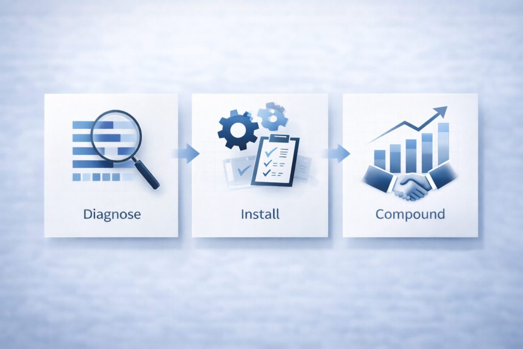 The diagnostic clarifies how your company presents to the market, where confidence is supported, where friction remains, and which structural weaknesses deserve immediate attention. It creates a decision ready view of commercial readiness before additional infrastructure is installed.
